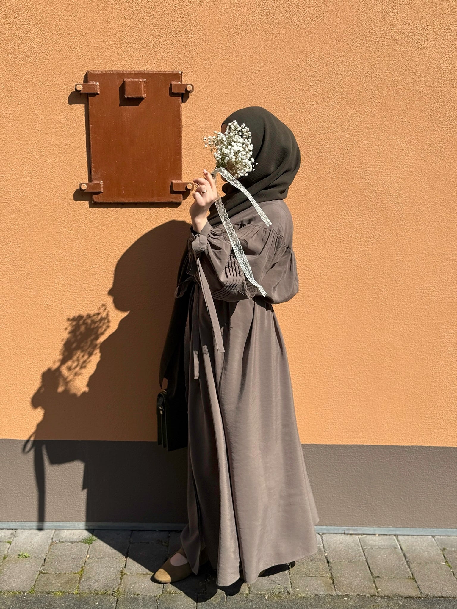 Fließendes Maxikleid mit Bindegürtel - Olive